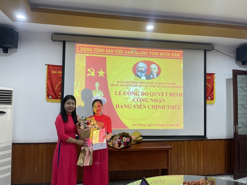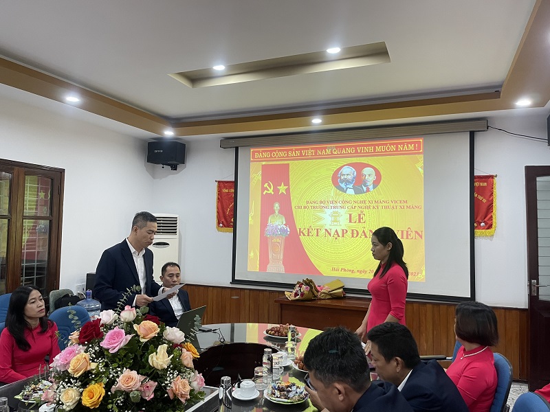 Cũng nhân dịp này, Nhà trường đã long trọng tổ chức Lễ kết nạp Đảng viên mới cho quần chúng Vũ Thị Thu Hà - Giáo viên Khoa Sản xuất xi măng và Lễ công nhận Đảng viên chính thức cho Đảng viên Phạm Thị Huyền Trang - Phó phòng Kinh tế tổng hợp. Những năm gần đây, Chi ủy Chi bộ Nhà trường thường xuyên quan tâm đến công tác phát triển Đảng viên mới, đảm bảo những quần chúng ưu tú được giới thiệu, bồi dưỡng để đứng trong hàng ngũ của Đảng, góp phần làm vững mạnh thêm tổ chức Đảng cơ sở, góp phần tăng hiệu quả trong công tác chỉ đạo, điều hành hoạt động chung của Nhà trường.